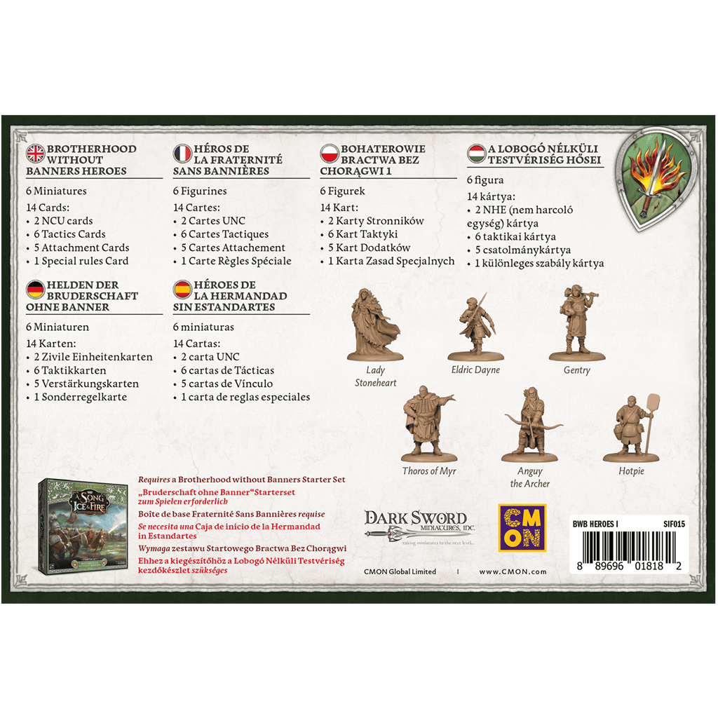 Entra en el mundo de Canción de Hielo y Fuego: el juego de miniaturas y lidera a los Héroes de la Hermandad sin Estandartes en la épica Guerra de los Cinco Reyes. Este set te permite reforzar tus ejércitos con personajes únicos que aportan habilidades tácticas y narrativas a tus partidas. Desde heroicos líderes hasta estrategas astutos, cada miniatura encarna el espíritu rebelde y audaz de la Hermandad.