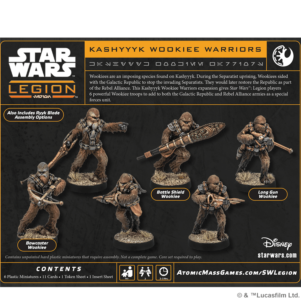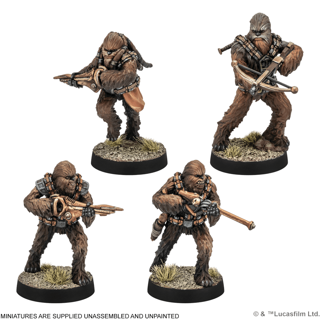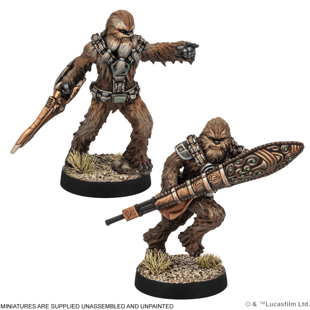 Esta expansión te permite desplegar una unidad de Fuerzas Especiales en tus ejércitos de la República Galáctica o la Alianza Rebelde, según tu afinidad con el Lado Luminoso. Con su fuerza bruta, resistencia natural y una lealtad a prueba de blásters, estos peludos guerreros no son precisamente conocidos por su sutileza… pero cuando entran en combate, mejor que tu enemigo ya tenga plan de huida.