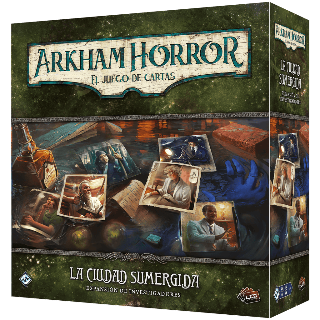 La Ciudad Sumergida, expansión de investigadores, incorpora 6 personajes nuevos que aportan habilidades únicas y más de 200 cartas de Jugador que amplían las opciones estratégicas del juego. Cada investigador cuenta con su propio enfoque para enfrentarse a lo desconocido: