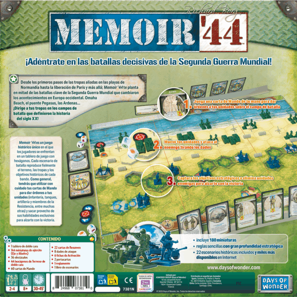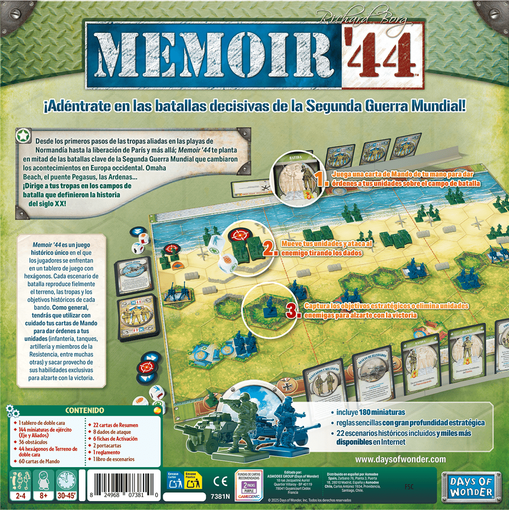 Con más de 140 miniaturas, escenarios variados y un sistema que combina fidelidad histórica con reglas accesibles, Memoir ’44 es ideal tanto para jugones veteranos como para nuevos generales en busca de una experiencia bélica envolvente y emocionante.