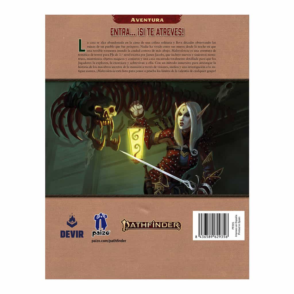 Escrita por James Jacobs, Malevolencia es una aventura de temática de terror para PJs de 3.er nivel. Incluye nuevos y siniestros monstruos, misteriosos objetos mágicos, conjuros y una casa encantada totalmente detallada para que los Jugadores la exploren, la exorcicen y sobrevivan a ella. Con un método inmersivo para investigar la historia de los macabros secretos de la mansión a través de visiones, sueños y una investigación a la antigua usanza, ¡Malevolencia está listo para poner a prueba los límites de la valentía de cualquier grupo!