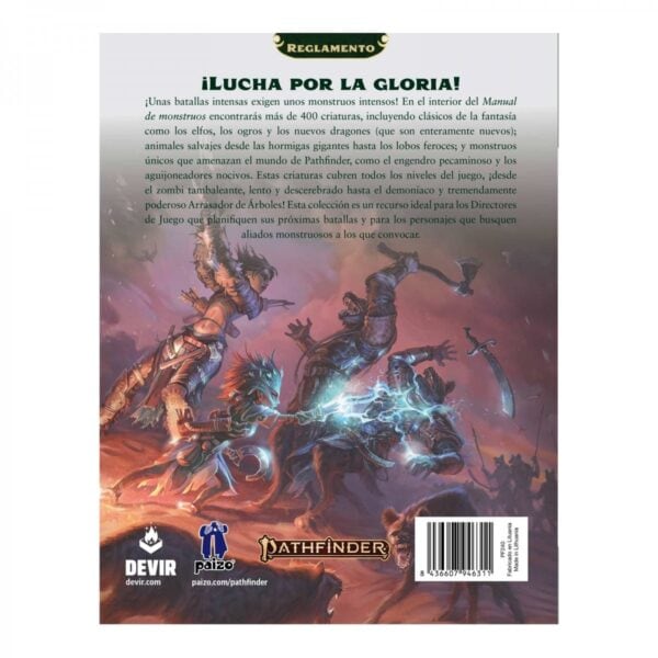Con más de 400 monstruos de todos los tamaños, olores y alineamientos, esta colección se convierte en el mejor amigo (o peor pesadilla) de cualquier Director de Juego. Desde clásicos inolvidables como elfos oscuros, ogros y dragones reinventados desde cero, hasta amenazas únicas que solo existen en el mundo de Pathfinder, como los temibles aguijoneadores nocivos o el inquietante engendro pecaminoso, aquí hay bichos para todos los gustos (y disgustos).