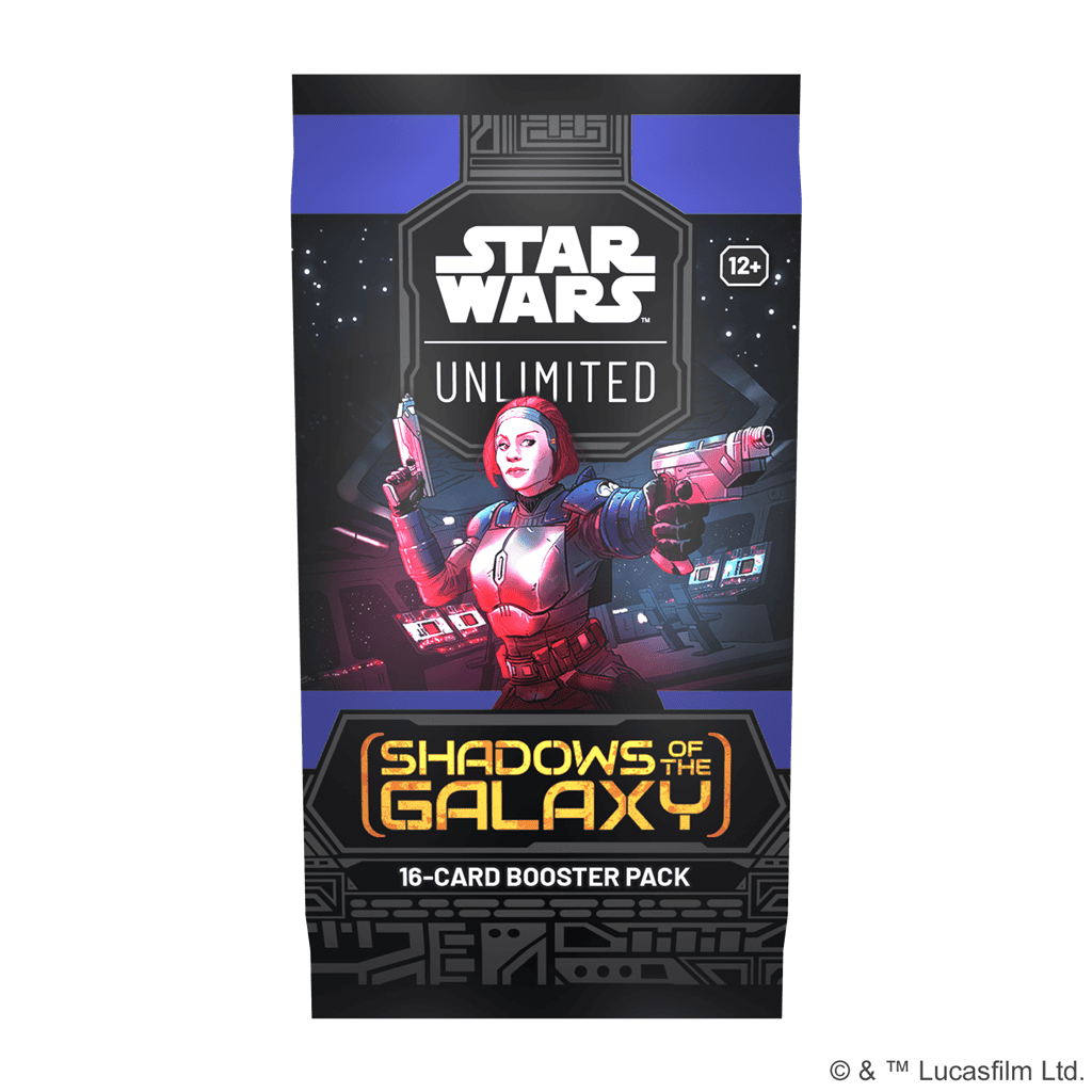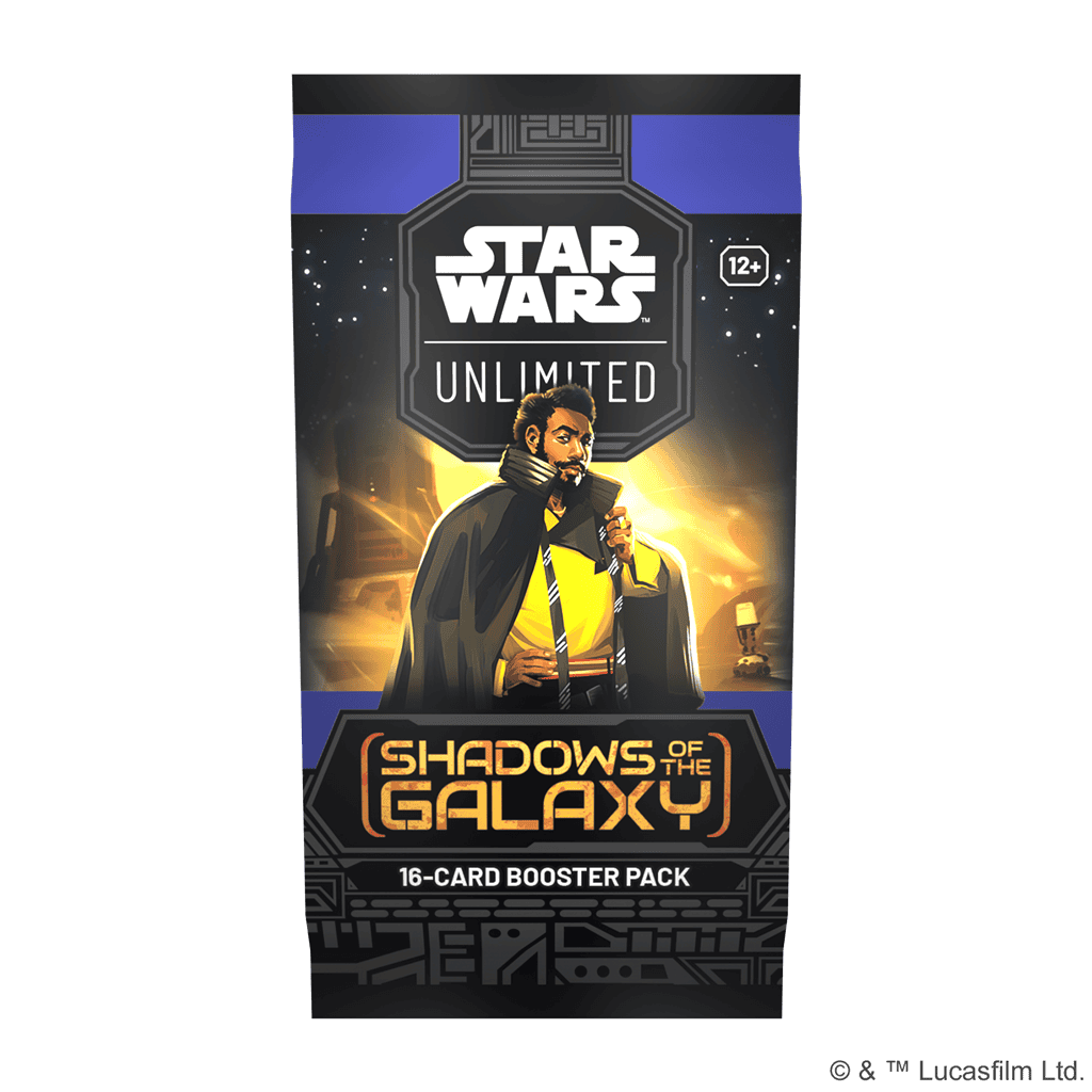Enter a galaxy of endless possibilities in Star Wars™: Unlimited! In this fast-paced, easy-to-learn trading card game, you and your opponent face off in exciting head-to-head battles full of iconic Star Wars characters. In this booster pack for the game’s second set, Shadows of the Galaxy, you’ll find 16 cards to add to your collection, including 9 common cards, 3 uncommon cards, 1 rare or legendary card, 1 leader, 1 base/token, and 1 foil card.