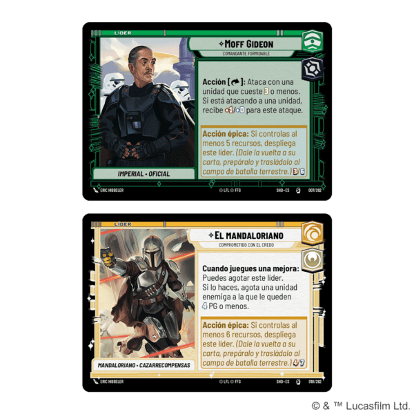 ¡Adéntrate en una galaxia de infinitas posibilidades con Star Wars™: Unlimited! Con las sencillas reglas de este trepidante juego de cartas coleccionables, tu adversario y tú os enfrentaréis en emocionantes batallas protagonizadas por los personajes más emblemáticos del universo de Star Wars. ¡Aventaja a tus enemigos como el Mandaloriano o abrúmalos con la autoridad del moff Gideon!