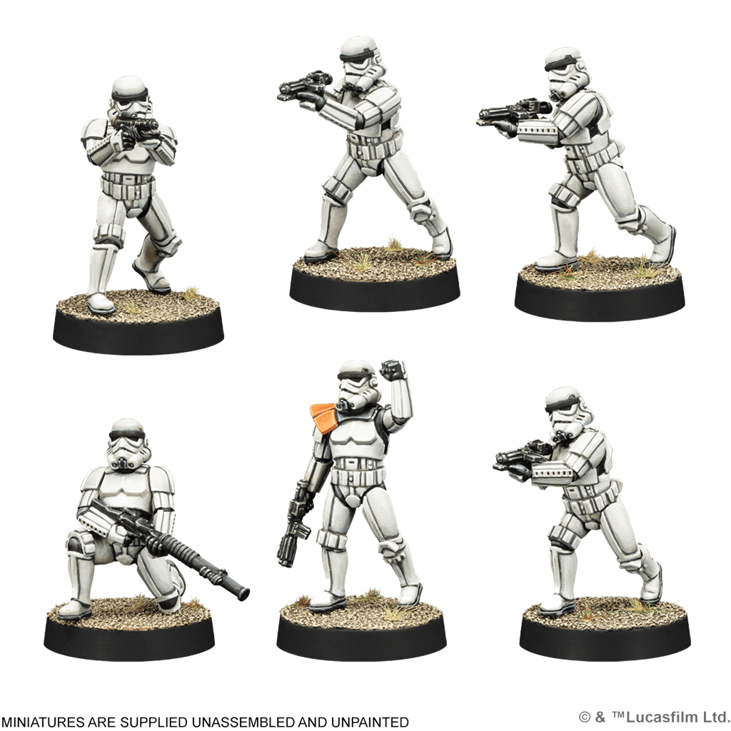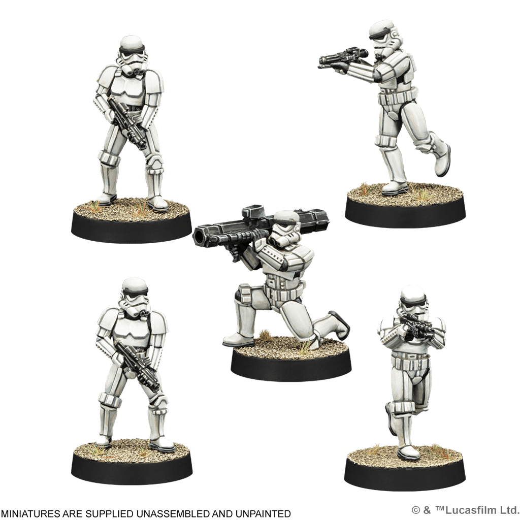 Esta expansión te permite desplegar una unidad completa de soldados de asalto, compuesta por un líder, ocho soldados estándar y dos especialistas con armas pesadas listas para pulverizar a la escoria rebelde. Con su rigidez táctica y su versatilidad en combate, los Stormtroopers son un pilar imprescindible en cualquier ejército del Imperio Galáctico.