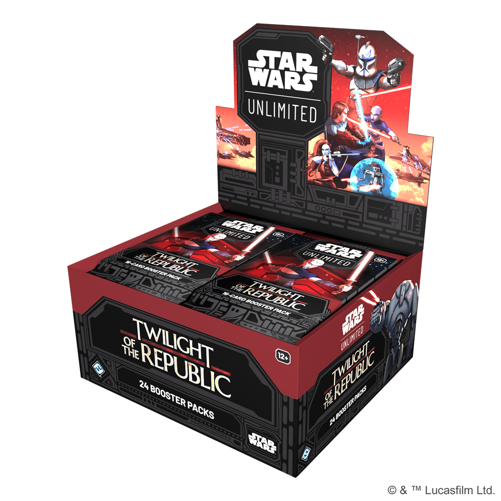 Amplía tu colección de Star Wars™: Unlimited con el conjunto de 24 sobres de Twilight of the Republic. Este set se centra en los dramáticos enfrentamientos de las Guerras Clon, donde los héroes y villanos de la República Galáctica y la Confederación de Sistemas Independientes luchan sin tregua. Cada sobre está lleno de posibilidades para que armes tu mazo, elijas a tu líder y despliegues poderosas tácticas en la mesa de juego.