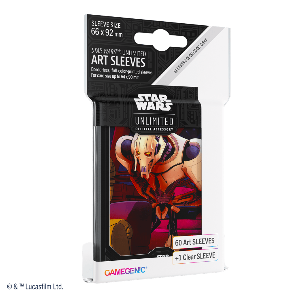 Gracias a su reverso de textura mate y su anverso transparente, estas fundas ofrecen un manejo cómodo y una visualización clara de las ilustraciones de tus cartas, permitiendo un barajado suave y sin interrupciones. Diseñadas para Star Wars™: Unlimited, estas fundas son también compatibles con otros LCGs y juegos de cartas coleccionables, asegurando la máxima protección para tus mazos en cada enfrentamiento. ¡Que tus enemigos sientan la misma amenaza que infunde el General Grievous en cada movimiento!