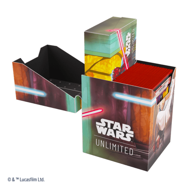 ¡Revive el legendario enfrentamiento entre maestro Jedi y el implacable Sith con la Unlimited Soft Crate – Obi-Wan Kenobi / Darth Maul de Star Wars™! Esta caja para mazos es la solución definitiva para los jugadores que buscan un accesorio elegante, seguro y temático. Con sus espectaculares ilustraciones a todo color de Obi-Wan y Darth Maul, podrás mantener tus cartas protegidas mientras demuestras tu lealtad a la Luz o al Lado Oscuro en cada partida.