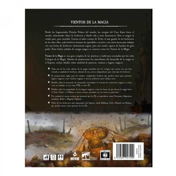 Warhammer 4ª Edición – Vientos de Magia es la guía definitiva para quienes desean desentrañar los secretos arcanos del Imperio. Aquí descubrirás la historia de la hechicería humana, los misterios de los ocho saberes mágicos y una colección revisada de hechizos, con carreras únicas para cada tipo de mago. Si tu mesa de juego necesita más caos (del bueno), encontrarás reglas detalladas para rituales, invocación de elementales, creación de familiares y construcción de constructos mágicos.